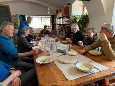 Zu Mittag wurden eine delikate Suppe und selbst gebackene Weckerl serviert. Eine Mohntorte zu Kaffee und Tee rundete die köstliche Mahlzeit ab.